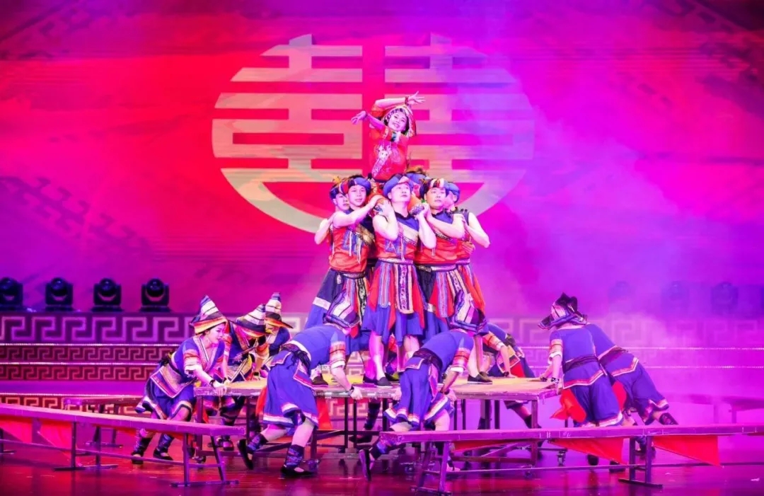 瑶族婚嫁习俗即古老神秘,但又有着许多传奇色彩。长桌酒摆着长长的酒席,瑶家人唱着美妙的山歌,端着瑶家酿的美酒,送上最美好的祝福,兄弟姐妹欢聚一堂。她们说不完的话题,她们道不尽的情深,她们似海般的深情,表达自己对姐妹们的眷恋不舍,新娘踏上幸福的路上,向往美好憧憬。舞蹈形式 ;民族现代特色鲜明,突出地域,结构严谨,形式新颖,独特,内容丰富多彩,大气。从现代审美意识出发,融合现代性、个性的突出与张扬,做到精美、凝练、独特、古朴、厚重。