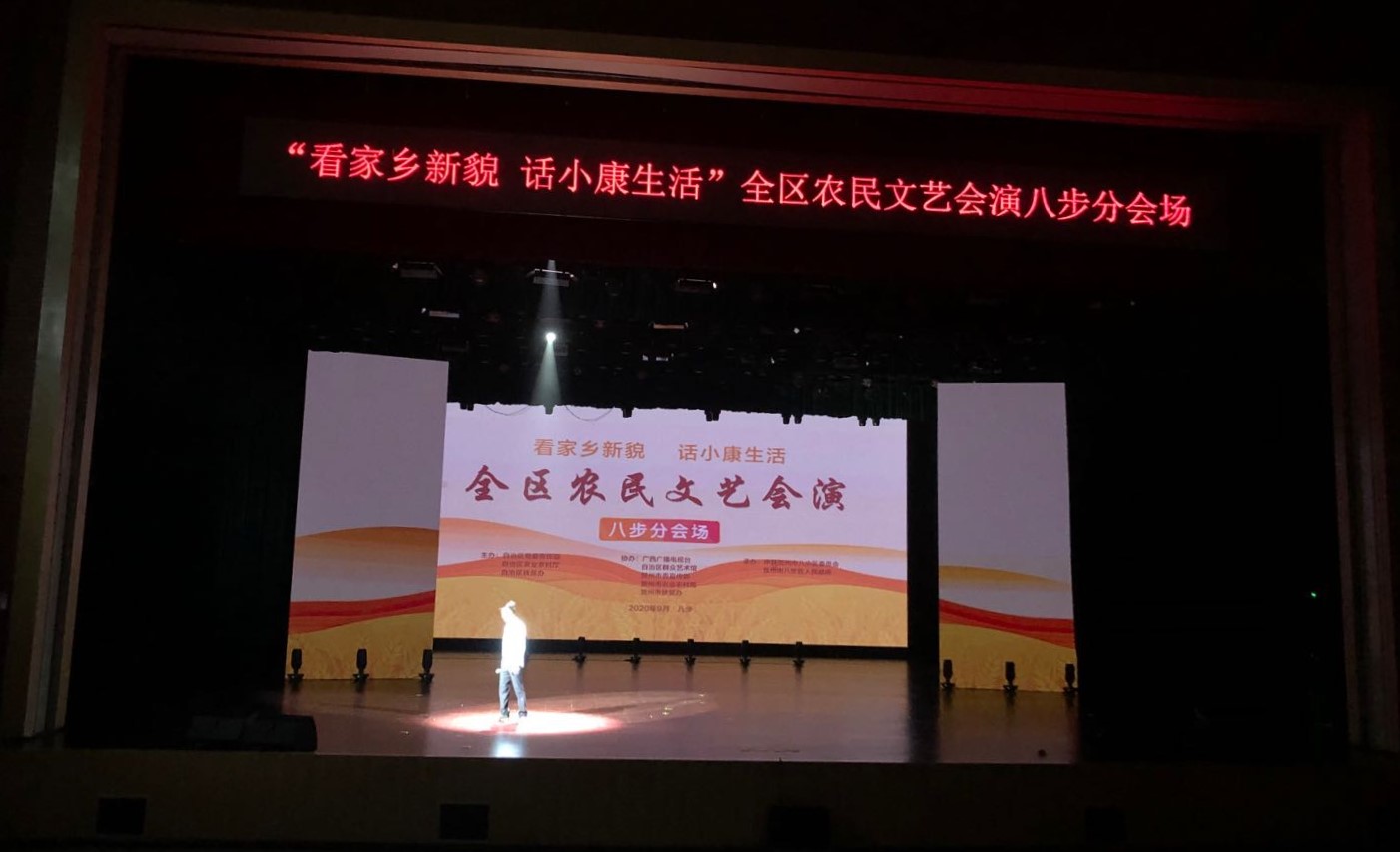 2020年9月22-23日,“看家乡风貌 话小康生活”全区农民文艺会演在我市设置八步分会场,贺州市群众艺术馆全体人员协助自治区群众艺术馆、市委宣传部做好文艺会演的保障工作