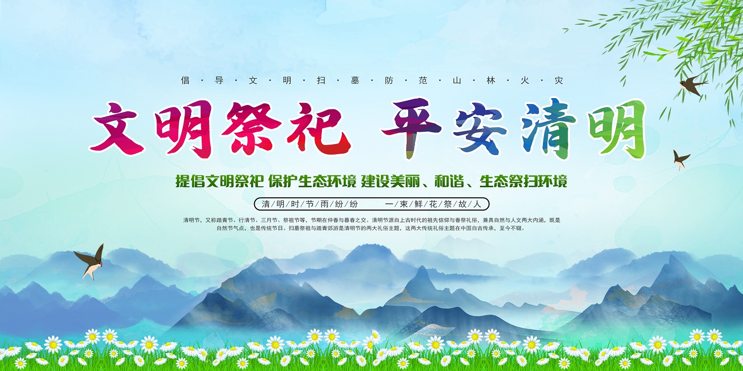 春风送暖,清明又至。祭祀先人、纪念先贤、缅怀先烈,慎终追远,是我国传统节日清明节的重要内容。为了秉承传统,文明祭祀,倡导文明新风,我们倡议: