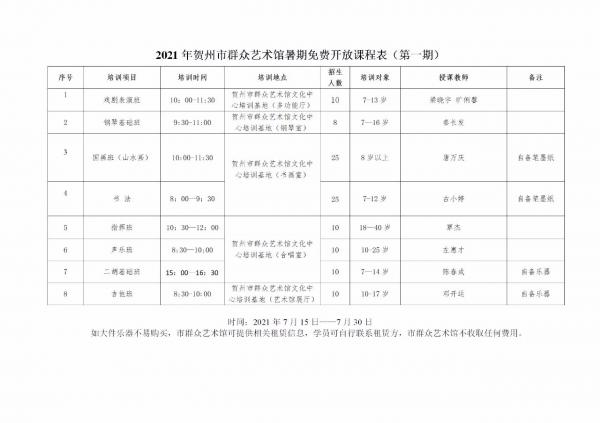 2021年贺州市群众艺术馆暑期免费开放培训班