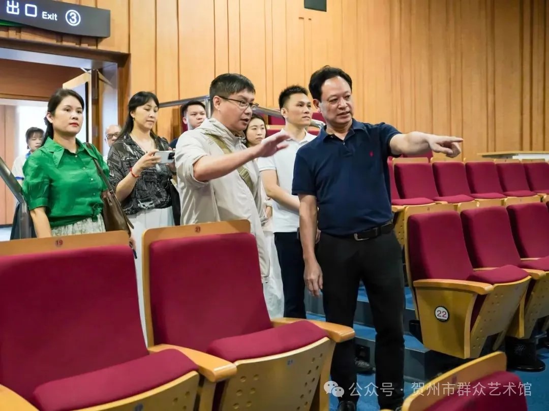 为进一步做好公共文化场馆建设、全民艺术普及和惠民服务工作,6月20日,贺州市文化广电和旅游局党组成员、贺州市群众艺术馆馆长莫波一行5人赴柳州市群众艺术馆开展馆际交流活动。在柳州市群众艺术馆馆长、书记宁文活及馆班子成员的带领下,一同参观了柳州市群众艺术馆群星剧场、多功能报告厅、微星剧场、龙湖美术馆、培训教室及柳州市非物质文化遗产展示中心,详细了解了柳州市群众艺术馆公共文化设施布局、场馆建设、群众文化品牌活动及数字化平台建设等情况。