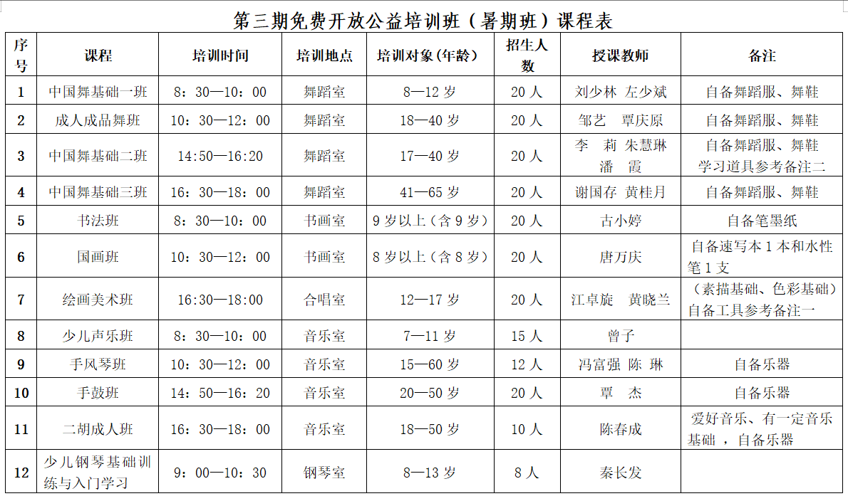 贺州市群众艺术馆2025年第三期公益艺术培训班学员名单
