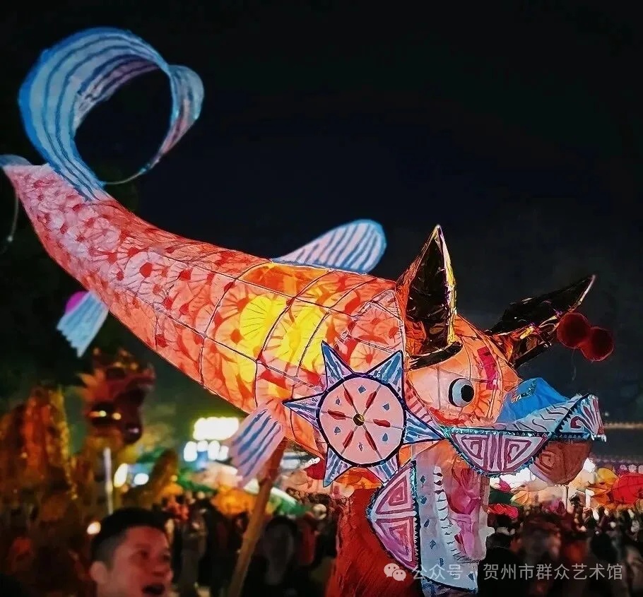 每逢正月初一至十五,贺州部分村镇的夜便被鱼龙灯点亮。鱼灯与龙灯结伴巡游,穿行于街巷阡陌。鱼灯象征“年年有余”,龙灯寓意“风调雨顺”,二者同行,便是一句行走的吉祥话。灯影摇曳,锣鼓开道,家家户户开门迎灯,孩童提灯追随——这不是表演,而是整条村庄共同参与的祈福仪式。灯火所至,晦气消散;灯火所向,福泽降临。