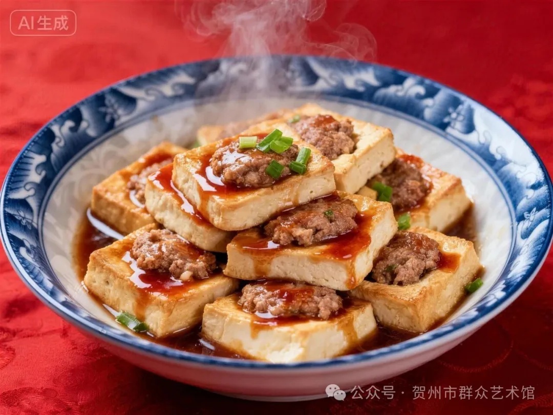 水豆腐酿,是贺州人年夜饭里不可缺席的温柔。雪白幼嫩的豆腐,以掌心为器,酿入肉末、马蹄、葱花,煎至两面金黄,再入砂锅慢煨。外皮微韧,内里软嫩,一口咬下,汤汁四溢。豆腐包容万物,谓之“酿”;千百个豆腐酿同锅共煮,谓之“和”。这是贺州人对“家”的理解:形各有别,心却相融。