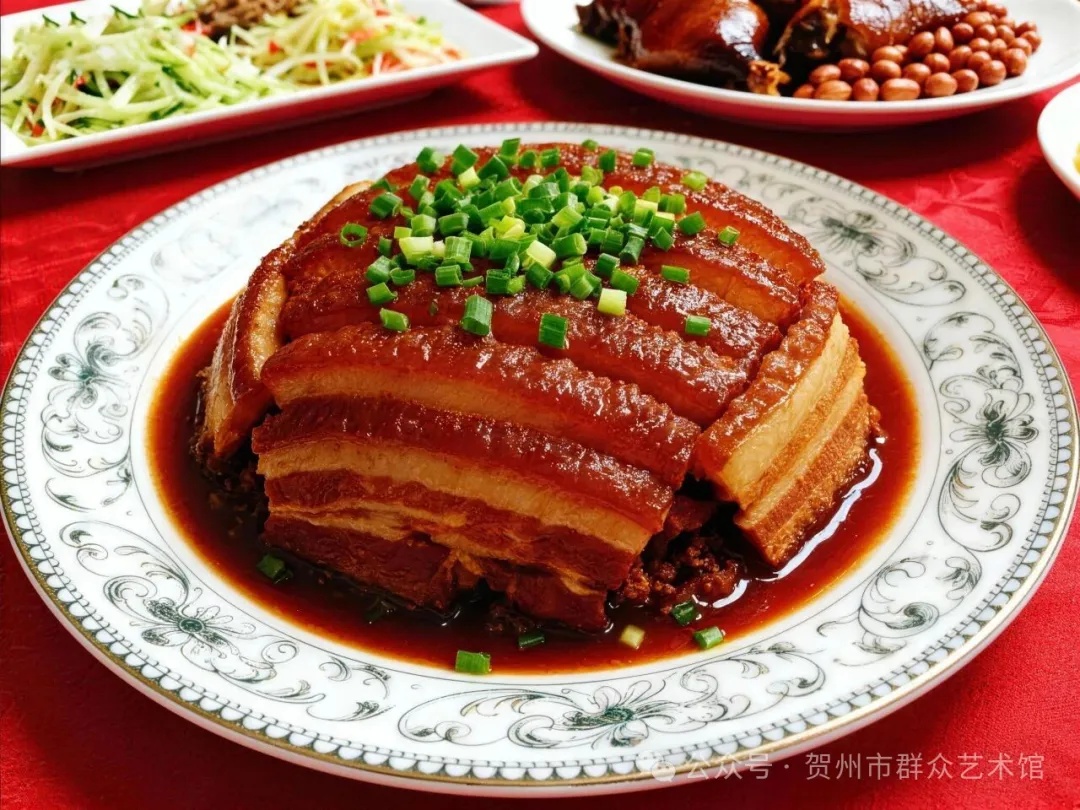 年夜饭桌,也是故乡风物的微缩展览。贺州宴席特色的黄田扣肉,以芋头与五花肉层层相扣、同蒸共馥。一片肉夹一片芋,整齐码放如圆环相衔,造型圆满,口感丰腴。芋吸肉香,肉融芋韵,这正是“扣”字的精髓:环环相扣,亲情绵长。在桂东人家心中,这碗扣肉不仅是年节硬菜,更是对团圆最朴实、最沉甸甸的诠释。