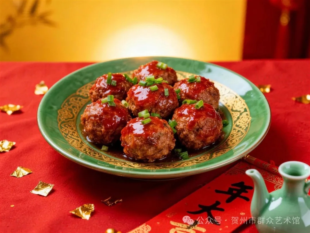 四个浑圆饱满的肉丸,象征 “福、禄、寿、喜” 团圆汇聚,寓意四季平安,阖家顺遂。