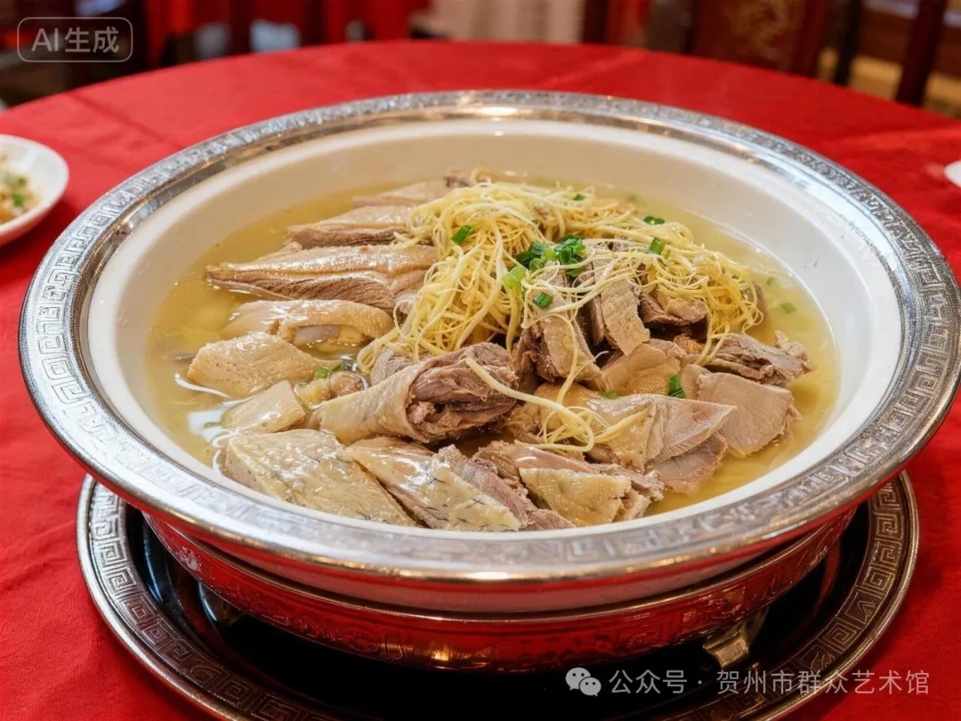 南乡鸭,则是一方水土最本真的告白。南乡人养鸭于清溪稻田间,鸭肉紧实而无膻腥。年节之时,取整鸭白切,皮黄肉红,只需一碟姜葱茸酱相佐,便是至高礼遇。不施浓墨重彩,只求原汁原味——这是贺州人的饮食哲学:至味无他,唯本真与敬意而已。