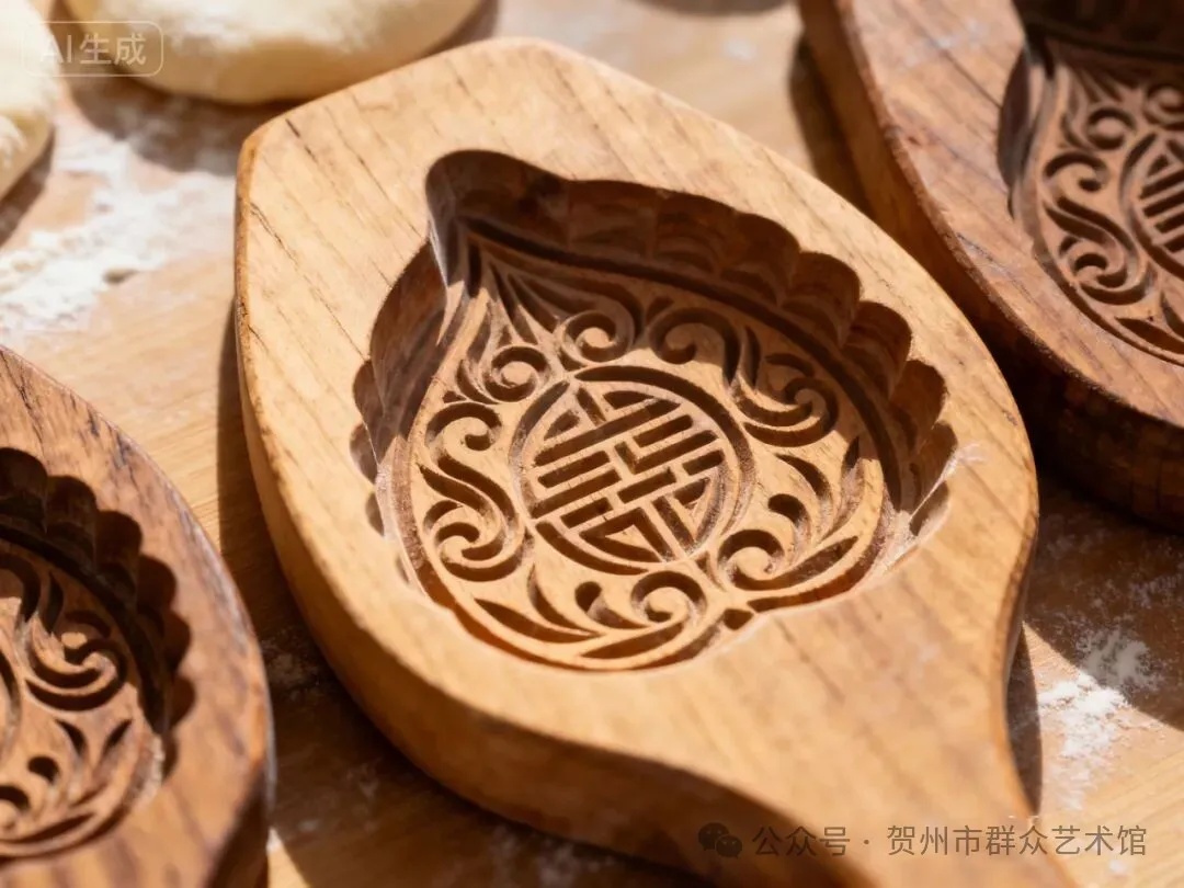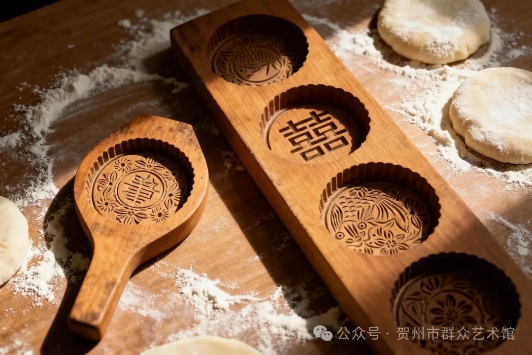 糕点模具(饼印)是连接厨房与作坊的精致工艺。其纹样雕刻绝非随意:桃形寓寿,蝙蝠绕寿寓“福寿双全”,繁复的缠枝花纹寓“生生不息”。这些图案在梨木或枣木上以阴刻完成,线条需圆润流畅,以保证脱模顺利。当糕粉填入、压实、磕出,平面的雕刻便转化为可食的立体浮雕,这是将 “吉祥观念”通过“工匠手艺”转化为“节日礼仪” 的完整链条,是食物作为文化载体的生动体现。